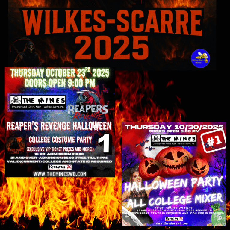 Wilkes-Scarre Weekend (Wilkes-Scarre) is the HOME for the premier Halloween events in Downtown Wilkes-Barre, PA! Over the next few weeks we will be sharing and announcing THE ULTIMATE events on social media and our website including adult/college bar parties, trunk or treats, haunted attractions and so much more! Stay connected on our event page and click the button below to access the up to date events! “Wilkes-Barre” becomes “Wilkes-Scarre!”